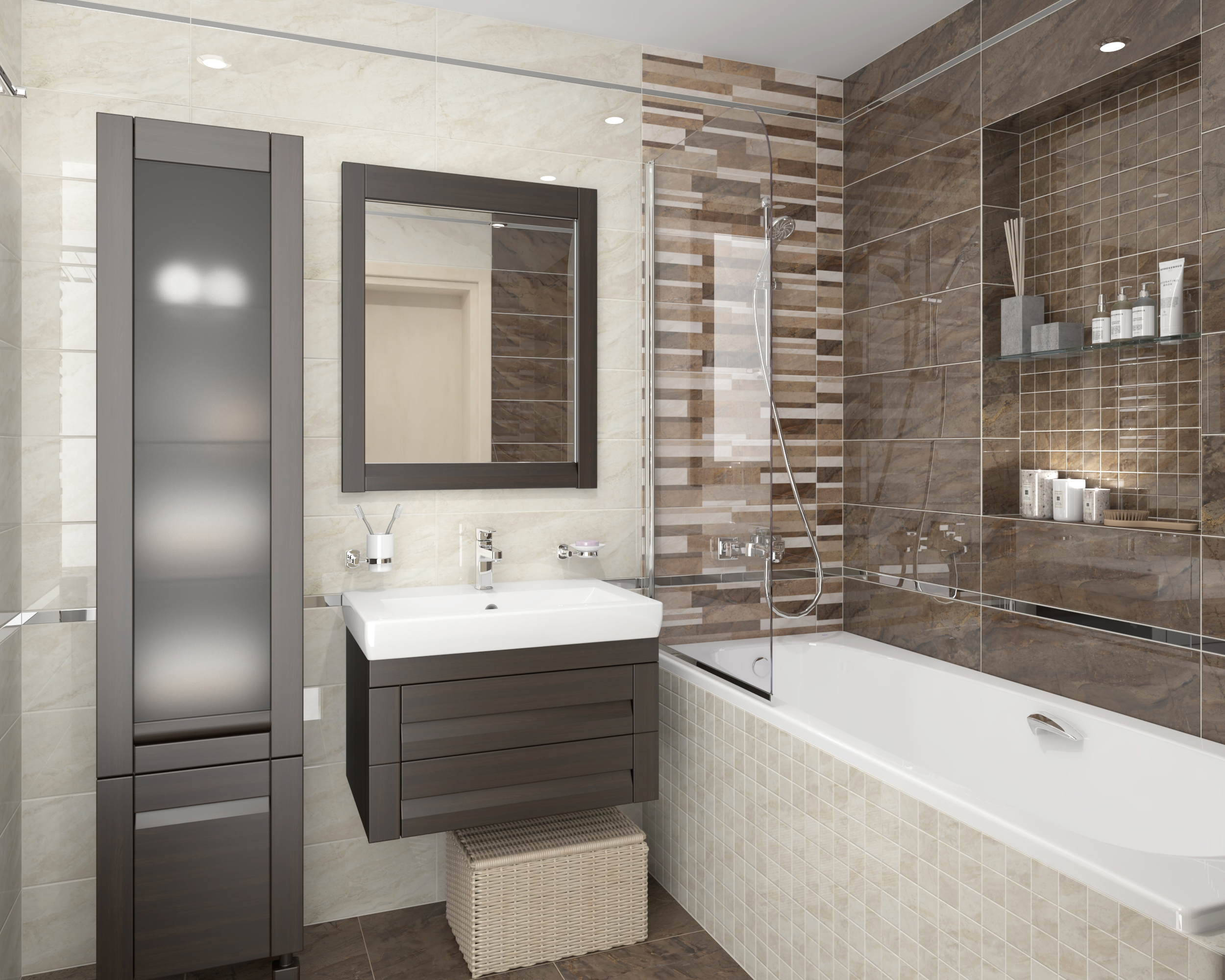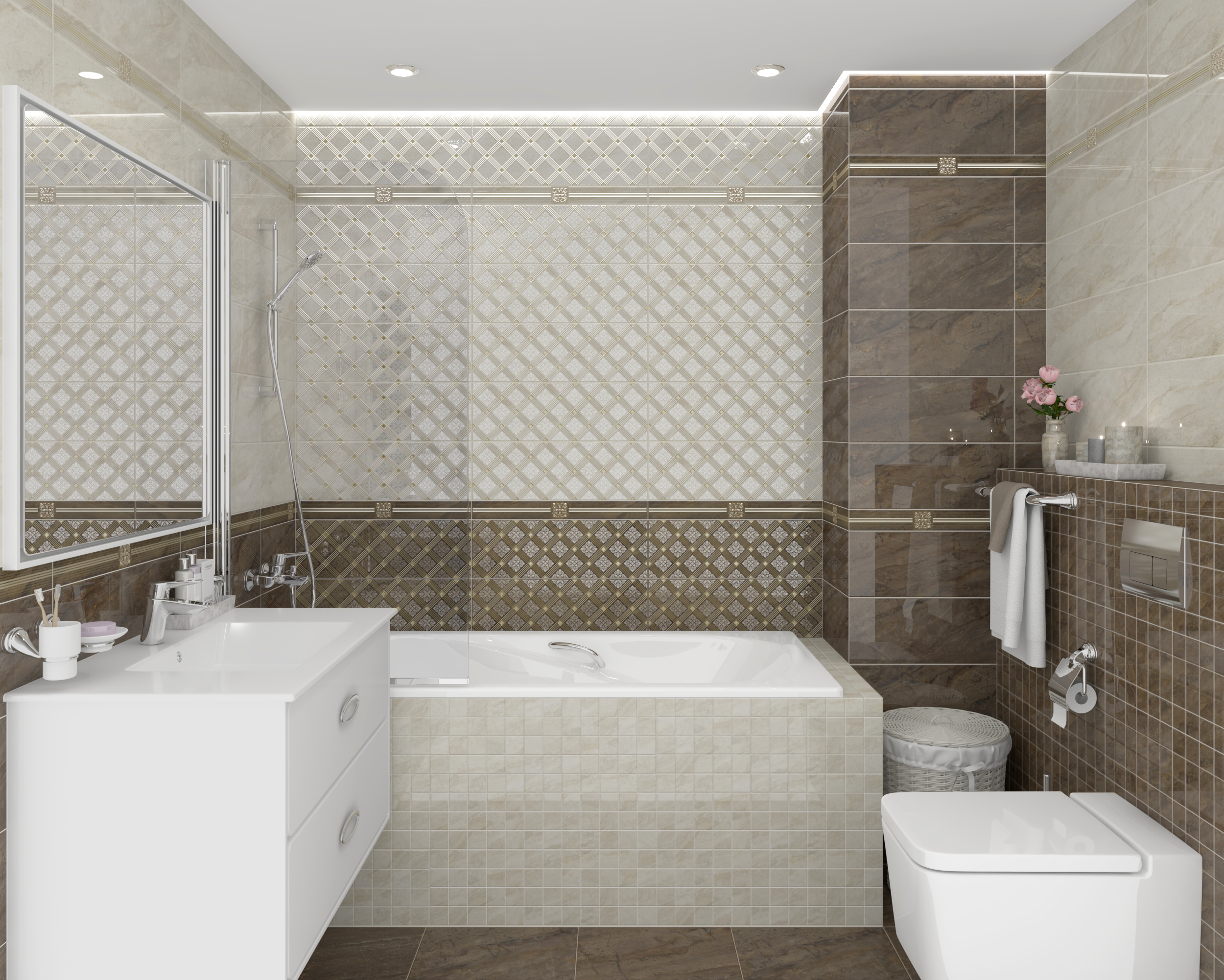 Роял Декор мозаичный кофейный светлый ММ60075 20х60 глянцевый